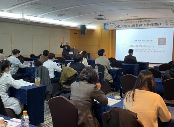 [중앙뉴스라인, 차행운기자] 전라남도교육청이 13일 여수 베네치아호텔에서 독서인문교육 연구회 및 참관 희망 교원 120명이 참석한 가운데 ‘2023 독서인문교육 연구회 최종 성과발표회’를 가졌다.