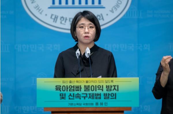 [중앙뉴스라인, 우제헌기자] 기본소득당 용혜인 의원은 모·부성제도 사용으로 인한 불이익을 방지하고, 신속하게 구제하기 위한 일명 ‘육아엄빠 불이익 방지법(근로기준법 및 남녀고용평등법 일부개정법률안)’을 발의했다. 용혜인 의원은 13일 오전 국회에서 기자회견을 열어 “모든 워킹맘, 워킹대디의 불이익을 해소하는 것이 저출생 대책의 첫 단추”라며 법안 발의의 취지를 밝혔다.