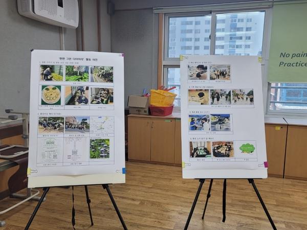14일 문산중에 따르면 ‘My Green Diary’는 ‘펀펀 그린 다이어리’가 2년 동안 진행했던 생태 도서 읽기, 텃밭 가꾸기, 플로깅 및 우리 동네 쓰레기 지도 만들기, 캠페인 활동, 생태환경 이벤트 등 활동에 대해 학생들이 직접 엮은 책이다.