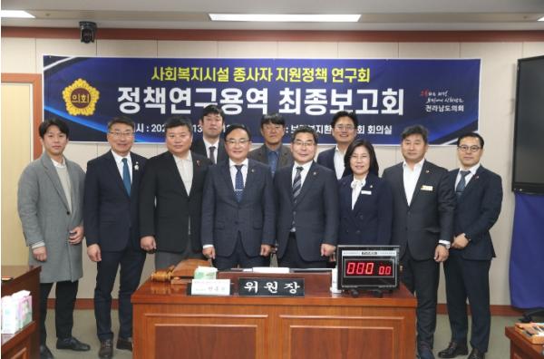 [중앙뉴스라인, 차행운기자] 전남도의회 의원 연구단체 ‘사회복지시설 종사자 지원정책 연구회’(대표위원 박종원)는 지난 12월 13일 도의회 보건복지환경위원회 회의실에서 ‘전라남도 지역 사회복지시설 종사자의 인권 보호 및 개선을 위한 분석 연구’에 대한 최종보고회를 개최했다.