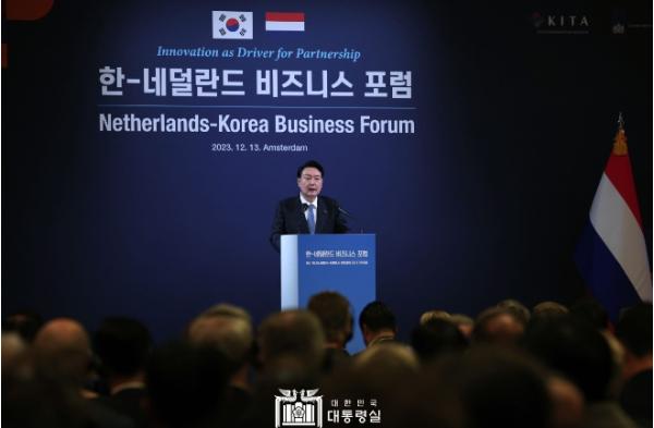 [중앙뉴스라인, 우제헌기자] 네덜란드를 국빈 방문 중인 윤석열 대통령은 오늘(12. 13, 수, 현지시간) 오후, 한-네덜란드 비즈니스 포럼에 참석해 양국 협력관계 구축에 기여해 온 기업인들을 격려하고, 미래 협력방향을 제시했다.
