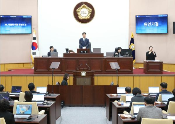 이어 강수진 예산결산특별위원장의 2024년도 일반?특별회계 세입?세출 예산안 심사보고에 이어, 상임위원회의 예비 심사를 거친 32건의 안건을 최종 의결하고 폐회했다. 특히 내년도 예산안은 예산결산특별위원회의 심사와 계수조정을 거쳐 총 1조 49억 원으로 최종 확정됐다.