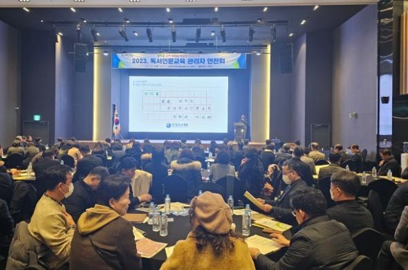 [중앙뉴스라인, 차행운기자] 전라남도교육청이 12월 18일 신안 자은도 라마다프라자호텔&씨원리조트에서‘2023 독서인문교육 관리자 연찬회’를 갖고, 학교 현장의 독서인문교육 내실화 방안을 모색했다.
