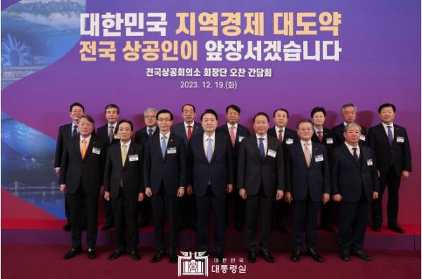 [중앙뉴스라인, 우제헌기자] 윤석열 대통령은 12월 19일 각 지역을 대표하는 전국상공회의소 회장단을 청와대 영빈관으로 초청해 오찬 간담회를 열었다. 오늘 오찬 간담회는 각 지역을 대표하는 상공인들과 격의 없이 소통하고 경제 활력 제고를 위한 민·관 ‘팀 코리아’ 협력을 강화하기 위해 마련됐다.
