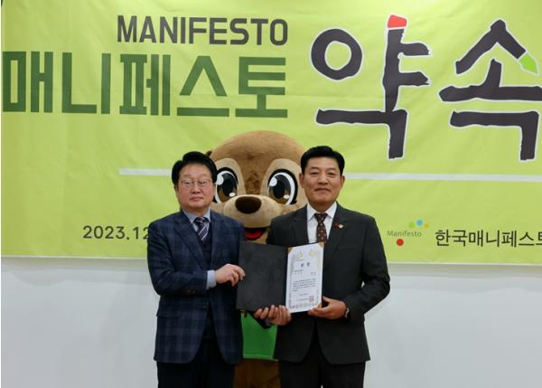 한국매니페스토실천본부가 주최하는 ‘2023 지방의원 매니페스토 약속대상’은 지역발전과 주민들의 복지증진 및 삶의 질 향상을 위해 헌신하고 선거 매니페스토 이행에 충실한 지방의원에게 주는 상으로 ‘공약이행’과 ‘좋은조례’ 2개 분야로 나눠 분야별 전문가 심사를 통해 최종적으로 상을 수여한다.