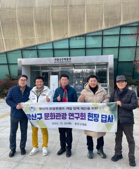 한편, ‘광산구 문화관광 연구회’는 정재봉 대표의원을 비롯해 김명수·박현석·이우형·김영선·박해원 의원으로 구성됐으며, 광산구 역사문화유적과 연계한 문화관광 활성화 방안을 주제로 다양한 활동을 전개해 나가고 있다.