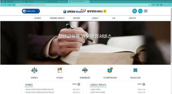 도교육청은 다양한 법무행정 정보를 한 곳에 모아 학부모와 교직원이 편리하게 이용할 수 있는 법무행정 전용 홈페이지를 구축해 2024년 1월부터 운영한다고 28일 밝혔다.