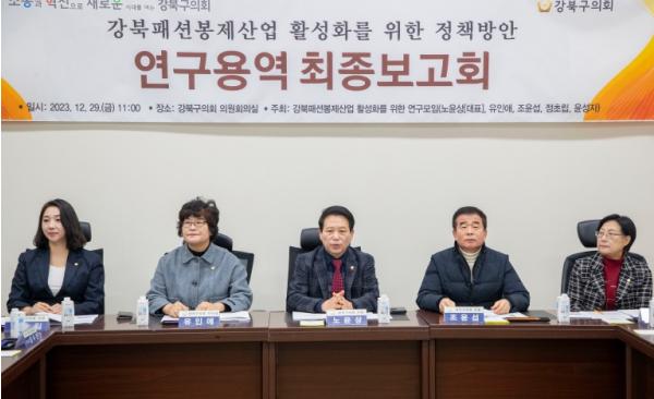 [중앙뉴스라인, 이승훈기자] 강북구의회 의원연구단체인'강북패션봉제산업 활성화를 위한 연구모임'은 지난 12월 29일 의회 3층 의원회의실에서 ‘강북패션봉제산업 활성화를 위한 정책방안 연구용역’ 최종보고회를 개최했다.