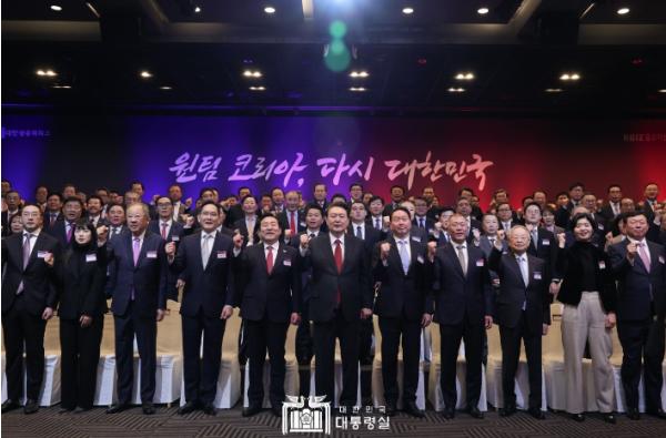 오늘 행사에는 김기문 중소기업중앙회 회장, 최태원 대한상공회의소 회장 등 경제 6단체장을 비롯해 400여 명의 경제인이 참석했으며, 특히, 우리 경제의 미래인 청년 기업인 100명도 참석해 자리를 빛냈다. 이외에 정부에서는 최상목 경제부총리 겸 기획재정부 장관, 오영주 중소벤처기업부 장관, 방문규 산업통상자원부 장관, 이정식 고용노동부 장관, 박진 외교부 장관, 김주현 금융위원장 등이, 대통령실에서는 이관섭 비서실장, 성태윤 정책실장, 박춘섭 경제수석, 이도운 홍보수석 등이 참석했다.