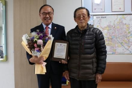 수석2통 경로회는 “조동식 의원이 평소 지역 어르신들을 위한 봉사활동과 지역사회 공동체 구현에 기여한 바가 크며, 경로회와 더불어 훈훈한 정을 함께 나누는 아름다운 이웃사랑 운동을 지속적으로 실천해 온 공로에 고마운 뜻을 담아 감사패를 드린다”고 밝혔다.