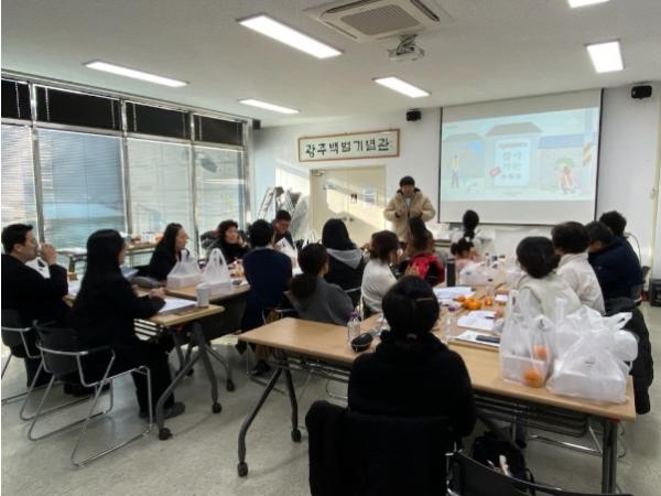 연수는 지난해 광산구 온마을이음학교를 함께 운영한 한울 박광희 대표가 온마을이음학교에 대한 핵심역량과 실천방향 설명을 중심으로 진행됐다. 더불어 마을 속에서 학생들의 성장을 돕기 위한 마을-행정기관-학교-교육청이 협력시스템 구축 방안도 함께 논의됐다.