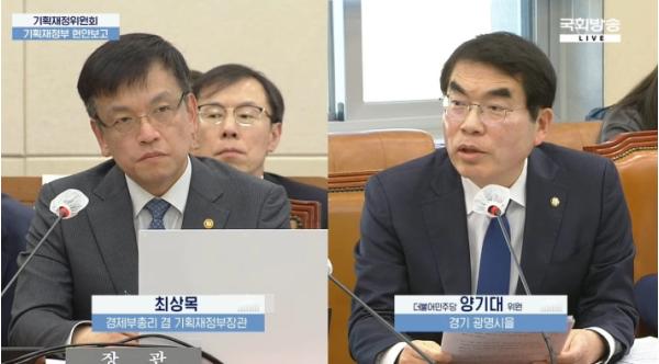 양 의원은 이날 최상목 경제부총리겸 기획재정부 장관에게 레고랜드, 태영건설 사태와 관련해 "정부가 유동성 공급이나 채권단 설득 등의 문제를 미루려고만 든다"며 "부동산 PF 문제에 대해 폭탄돌리기식 조치로 일관하고 있다"고 정부의 조치를 비판했다.