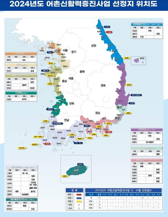 [중앙뉴스라인, 우제헌기자] 해양수산부는 1월 9일 ‘2024년도 어촌신활력증진 사업’ 대상지 31개소를 선정하여 발표했다.