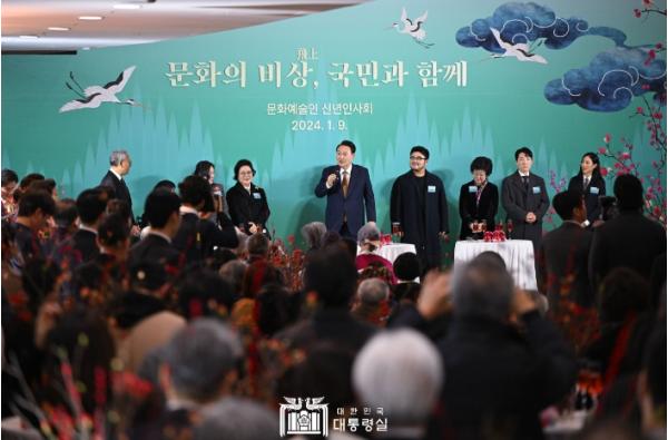 대통령은 먼저 “문화예술인들과 이렇게 함께 2024년 새해를 열게 돼 아주 기쁘다”며 자리를 함께해 준 참석자들에게 감사를 표했다.