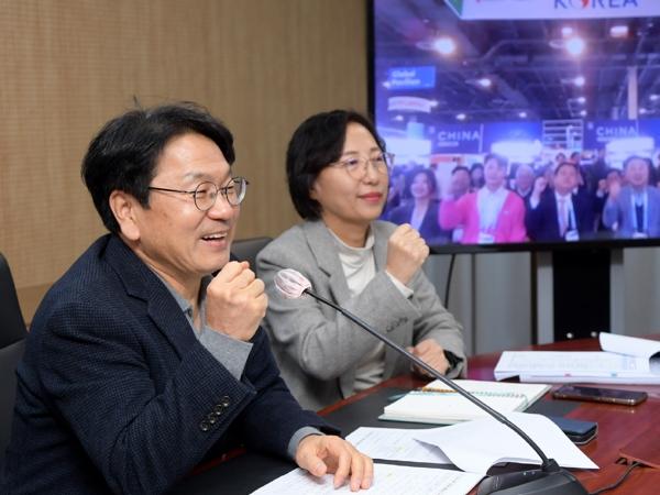 강기정 시장은 개관행사에 이어 온라인 화상 연결을 통해 광주공동관 참가기업인 ㈜마이렌·㈜인디제이·㈜다비다·㈜블루캡슐·인트플로우㈜·㈜튜닙·㈜딥메디·㈜아트랩 등의 부스를 일일이 둘러보며 회사의 강점과 혁신제품들을 안내받고, 관계자들을 격려했다.