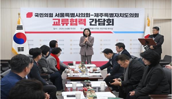 [중앙뉴스라인, 이승훈기자] 서울특별시의회 국민의힘(대표의원 최호정)은 9일 오후 3시 30분, 제주특별자치도의회 국민의힘(대표의원 현기종)과 교섭단체 교류·협력 활성화를 위한 간담회를 개최했다.