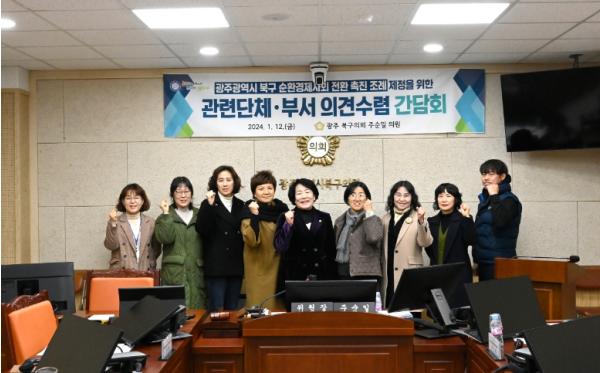 [중앙뉴스라인, 백흥순기자] 광주 북구의회 주순일 의원(운암1·2·3동, 동림동)이 지난 12일'광주광역시 북구 순환경제사회 전환 촉진 조례안'제정을 위한 관계기관 의견수렴 간담회를 개최했다고 밝혔다.