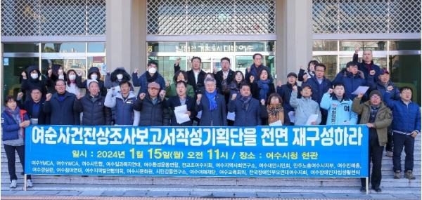 이날 김회재 국회의원, 주종섭 의원, 여수지역사회연구소 서희종 사무국장을 비롯하여 여수YMCA, 여수YWCA, 여수시민협, 여수일과복지연대, 여수환경운동연합, 전교조여수지회, 여수지역사회연구소, 여수대안시민회, 민주노총여수시지부, 여수민예총, 여수경실련, 여수참여연대, 여수지역발전협의회, 여수시문화원, 시민감동연구소, 여수여해재단, 여수교육회의, 전국장애인부모연대여수지회, 여수장애인자립생활센터와 같은 여수지역의 시민사회ㆍ종교ㆍ노동ㆍ교육ㆍ장애인단체 등으로 구성된 (가칭)‘여순사건진상보고서작성기획단 여수지역대책위원회’가 모여 기자회견을 열었다.