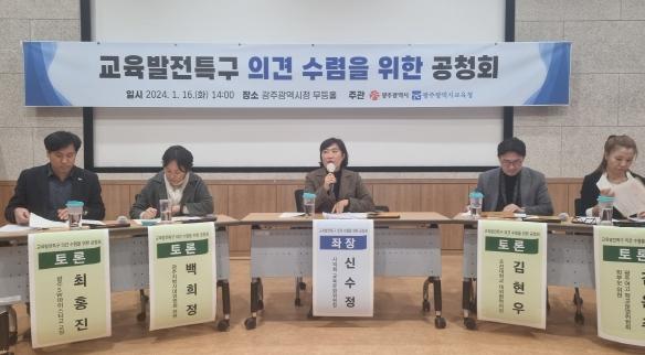 [중앙뉴스라인, 김병연기자] 광주시교육청이 광주광역시와 함께 16일 시청 무등홀에서 ‘교육발전특구 공모사업’ 공청회를 열고 각계 의견을 수렴했다.