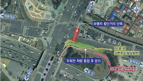 [중앙뉴스라인, 이승훈기자] 서울시는 한강대교 북단 교차로의 강변북로 일산방향으로 가는 차량과 잠실방향 우회전 차량이 한데 섞여 발생하는 상습정체 문제에 대해 금년 4월부터 이를 개선하는 공사를 시행한다는 계획이다.