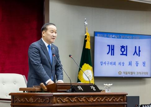 최동철 의장은 개회사를 통해 “유독 추운 올겨울, 태영건설 워크아웃, 부동산PF발 경제 위기 등 경제 한파 또한 길어지며 민생 회복이 늦어지고 있다.”라며 “올해는 이 위기를 꼭 극복해내겠다는 의지를 갖고, 그 어느때 보다 구민들에게 활발하고 적극적인 의정활동과 구정활동을 펼치겠다는 마음가짐을 다져주길 바란다.”라고 당부했다. 또한 “이번 임시회에 예정된 2024년 주요 업무보고에서는 구정운영의 전반적인 추진 상황과 향후 계획에 대해 면밀히 검토하고, 구체적이고 현실적인 대안으로 정책 완성도를 높여주길 바란다.”라고 말했다.
