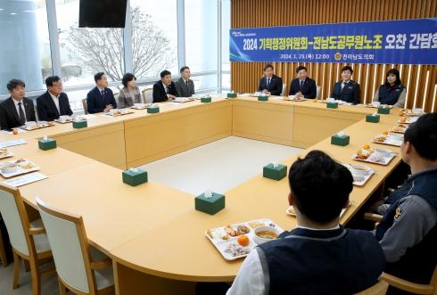 [중앙뉴스라인, 차행운기자] 전남도의회 기획행정위원회는 1월 25일 전남도청 구내식당에서 공무원 노조와 오찬 간담회를 갖고 구내식당 직영 전환 이후 개선사항에 대한 의견을 청취했다.