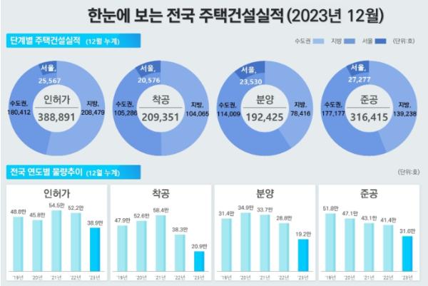 [중앙뉴스라인, 우제헌기자] 국토교통부는 ’23년 12월 기준 주택 통계를 발표했다.