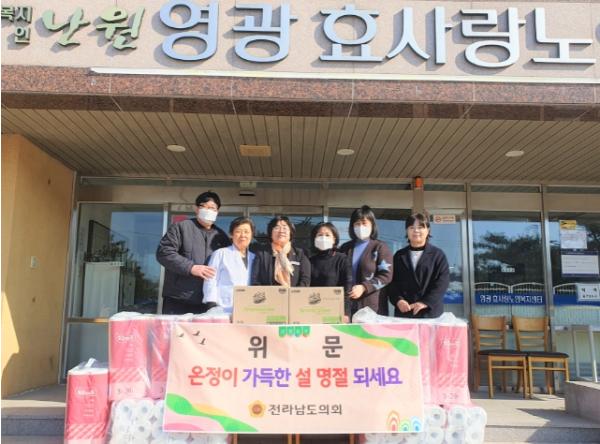 [중앙뉴스라인, 차행운기자] 전라남도의회 보건복지환경위원회 오미화 의원(진보당·영광2)은 지난 1월 29일, 설 명절을 맞아 영광 법성면에 위치한 ‘영광효사랑노인복지센터’를 방문해 일상에 필요한 생필품을 전달하며 격려의 메시지를 전했다.