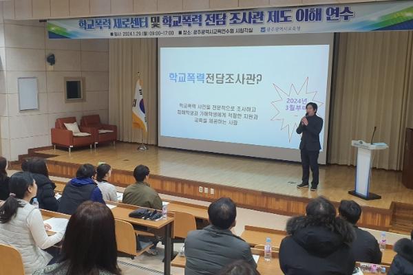 [중앙뉴스라인, 김병연기자] 광주시교육청이 지난 29일 광주교육연수원에서 학교폭력제도센터와 학교 폭력 전담조사관 제도 도입을 앞두고 시교육청, 각 교육지원청, Wee센터, 117센터 등의 업무 담당자가 참여한 가운데 연수를 실시했다.