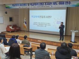 30일 시교육청에 따르면 이번 연수는 3월부터 운영되는 학교폭력제도센터와 학교폭력 전담조사관 제도의 현장 안착을 위해 마련됐다. 또 학교폭력 업무담당자 역량 강화와 통합 지원 체계 구축에도 목적을 뒀다.