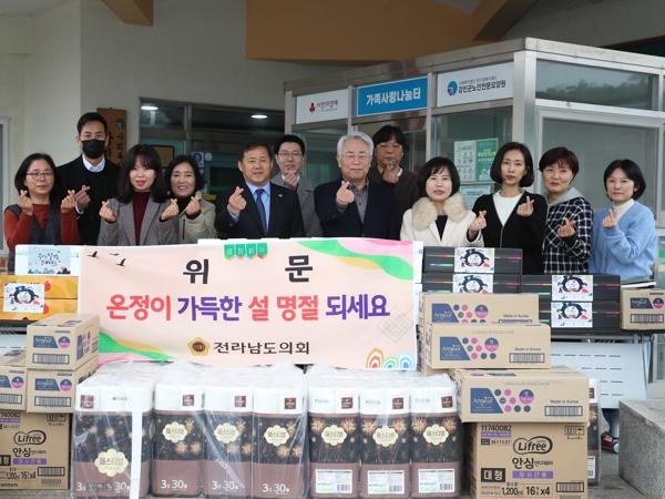 차 위원장은 2월 2일 강진군노인전문요양원을 찾아 화장지와 생필품 등 도의회에서 준비한 위문품을 전달했다.