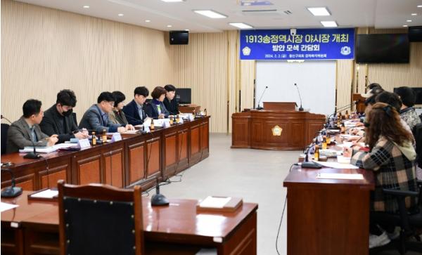 참석한 상인들은 “현재 겪고 있는 전통시장의 침체에 따른 자구책이 필요하다는 의견에 공감한다”며 “전통시장이 활력을 되찾기 위해서는 야시장을 통해 외부 사업자들도 판매에 참여할 수 있도록 하여 시장의 트렌드를 갖추고, 지역 특산품 판매장을 활용하는 등 경쟁력을 강화할 방법이 필요하다”고 강조했다.