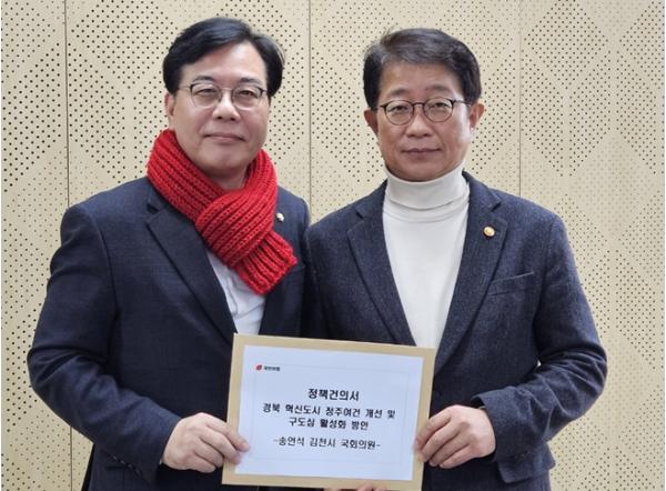 이 밖에도 △지방도 903호선(김천시 대항면~성주군 가천면) 국지도 승격, △EMU차량 정비기지 김천 유치, △양천~대항 국도대체우회도로 인접마을 교차로 설치 등 국토교통부 소관 지역 현안사업들에 대한 요구사항을 꼼꼼히 담은 정책건의서를 장관에게 직접 전달했다.