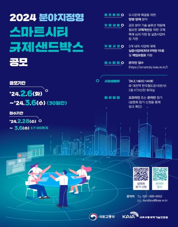 [중앙뉴스라인, 우제헌기자] 국토교통부는 보다 다양한 스마트도시 기술·서비스의 규제완화를 지원하기 위해 규제샌드박스 활용이 부족한 분야를 발굴하여 규제해소를 지원하는 분야지정형 규제샌드박스 공모를 신설한다.