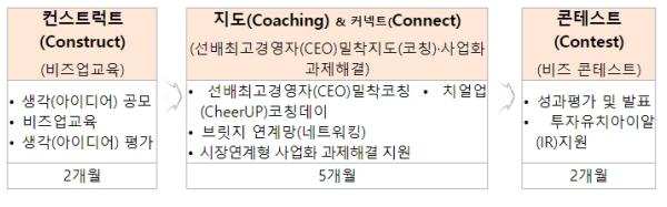 올해부터는 기술기반 업종 중 반도체, 생명공학(바이오), 생활양식(라이프스타일) 분야에 집중 육성할 계획이며, 선정된 기업에게는 약 7개월 간 맞춤형 교육·상담(멘토링), 사업화 자금, 협력 연계망(네트워크) 등 전방위 지원체계가 제공된다.