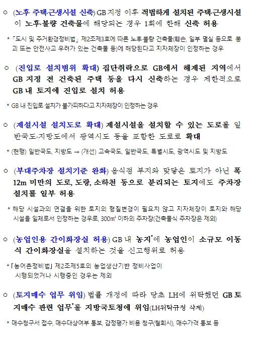 또한, GB로 지정됐다가 주민 집단취락으로 GB가 해제된 지역에서 GB 지정 전부터 있던 주택 및 근린생활시설을 신축하려는 경우, 인접한 GB 토지를 이용하여 진입로를 설치할 수 있게 된다.
