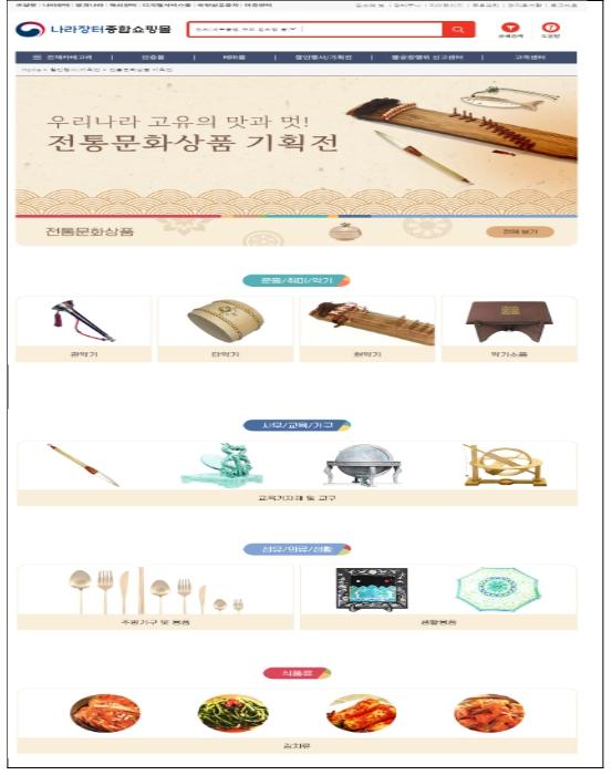 조달청은 1999년부터 전통문화상품을 정부조달물자로 지정하고 나라장터 종합쇼핑몰 등록과 판매를 통해 전통문화의 맥을 이어 온 장인들이 전통문화의 전승과 창작활동에 전념할 수 있도록 판로지원을 하고 있으며, 지난해에는 총 34억원 규모의 납품이 이뤄졌다.