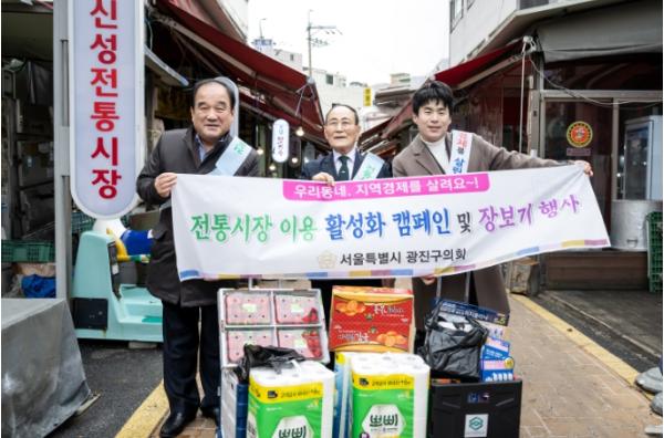 이번 설 명절맞이 장보기에는 가 선거구 의원들이 신성전통시장을, 나 선거구 의원들이 화양?능동시장을, 다 선거구 의원들이 자양전통시장을, 라 선거구 의원들이 노룬산~영동교 골목시장을 방문하여 미리 준비한 '온누리상품권'으로 신선한 농축수산물과 제수용품을 직접 구입했다. 또한 상인들과 구민들의 다양한 의견을 청취하고 전통시장 이용을 높이기 위한 캠페인을 진행했다.