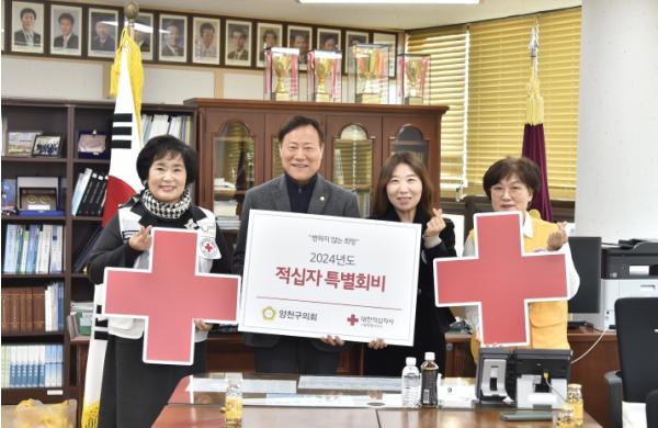 양천구의회는 이러한 적십자 활동을 지원하기 위해 매년 적십자 특별회비 모금사업에 적극 동참하며 나눔의 뜻을 함께하고 있다.