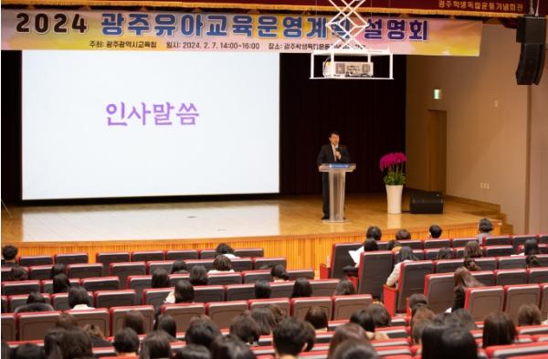 [중앙뉴스라인, 김병연기자] 광주광역시교육청이 7일 광주학생독립운동기념회관 강당에서 관내 공·사립유치원 교원 및 교육전문직원 등 300여 명 대상으로 ‘2024학년도 광주유아교육 운영계획 설명회’를 개최했다고 밝혔다.