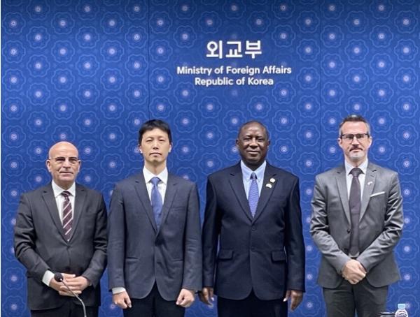 [중앙뉴스라인, 신기철기자] 외교부는 2월 14일 2024-25년 임기 유엔 안보리 비상임이사국으로서 우리와 함께 활동을 개시한 알제리, 시에라리온, 슬로베니아 주한대사를 초청, 유엔 대북제재 간담회(주재: 윤종권 원자력비확산외교기획관)를 개최했다. 동 간담회에서 외교부는 최근 북한의 안보리 결의 위반 동향 및 우리 정부 대응 노력을 설명하고, 북한 사안 관련 이사국 협력 제고 방안에 대해 주한공관과 의견을 교환했다.