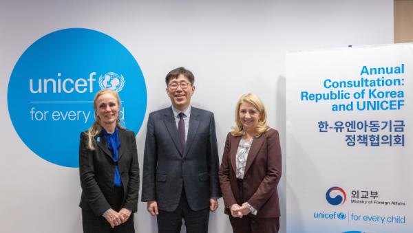 [중앙뉴스라인, 신기철기자] 외교부는 2월 14일 뉴욕에서 제19차 한-유엔아동기금(UNICEF) 정책협의회를 개최했다. 우리측에서는 원도연 외교부 개발협력국장이, 유니세프측에서는 키티 반 더 헤이든(Kitty van der Heijden) 사무차장보가 각각 수석대표로 참석했다.