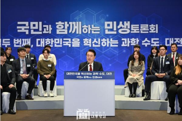 [중앙뉴스라인, 우제헌기자] 윤석열 대통령은 2월 16일 오전 대전에서 ‘대한민국을 혁신하는 과학 수도 대전’을 주제로 열두 번째 ?국민과 함께하는 민생토론회?를 개최하여, 국가 과학기술 경쟁력을 높이고 대전을 과학 수도에 걸맞게 혁신클러스터의 글로벌 허브로 업그레이드하기 위한 방안들을 논의했다.