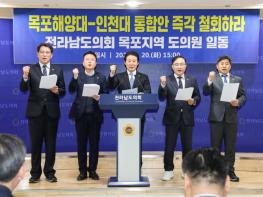 전남도의회, 국립목포해양대-인천대 통합결정 철회 요구 성명서 발표
