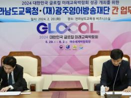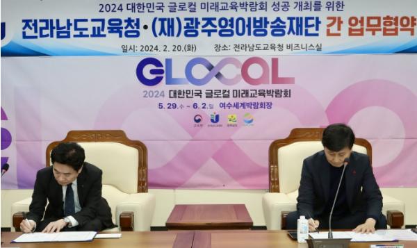 [중앙뉴스라인, 이상권기자] 전라남도교육청과 (재)광주영어방송이 20일 전라남도교육청에서 ‘2024 대한민국 글로컬 미래교육 박람회’ 성공 개최를 위한 업무협약을 체결했다.