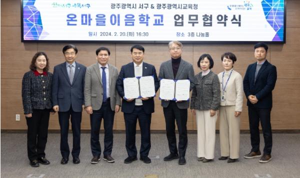 김이강 서구청장은 “이번 협약을 통해 온마을이음학교에 참여한 서구 학생들의 실력 향상과 전인적 성장을 기대한다”며 “일반자치와 교육자치가 활발하게 공유되어 성과를 낼 수 있도록 하겠다”고 말했다.