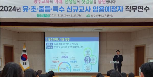 이정선 교육감은 “광주교육의 한 가족이 된 신규 선생님들을 진심으로 환영한다”며 “안정적인 학교 적응과 교직 역량 강화를 위해 마련된 이번 연수를 통해 우리 아이들이 바라는 꿈을 이룰 수 있게 함께 노력해 주길 바란다“고 말했다.