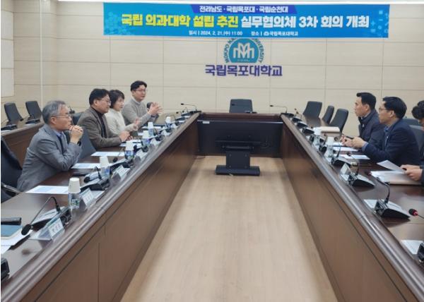 [중앙뉴스라인, 이상권기자] 전라남도는 21일 목포대학교, 순천대학교와 함께 전남도민의 30년 숙원인‘전라남도 국립 의과대학 신설’을 위한 관계기관 실무협의체 회의를 열어 공동 단일 의과대학 설립안 마련을 논의했다.