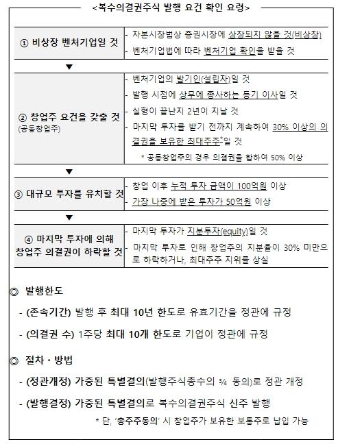 복수의결권주식이란 1주당 최대 10개의 의결권이 부여되는 주식으로, 벤처기업이 지분 희석의 우려 없이 대규모 투자를 유치해 성장할 수 있도록 지원하기 위해 도입됐다.
