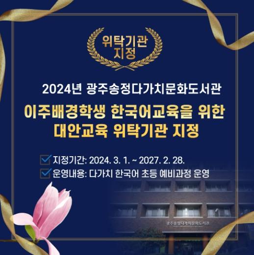 광주송정다가치문화도서관, 이주배경학생 한국어교육을 위한 대안교육 위탁기관 지정
